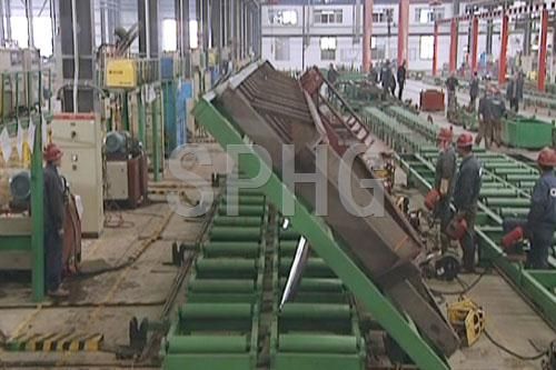 采用自動定位方式,所有工位均采用自動焊接。整條生產線采用滾輪輸送方式,在生產過程中,盡量避免行吊在工件上的使用,節省了行吊的使用時間,提高了工作效率。