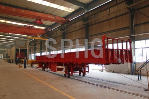 半掛車生產線采用滾輪生產方式,生產過程中減少了行車的使用頻率,降低產品的生產時間,提高了工作效率,增加安全系數。對半掛車的工藝布局進行合理的規劃,結合用戶的實際需求設計制造工裝、夾具及專用焊接設備。