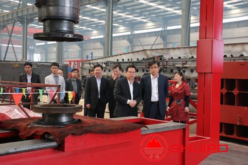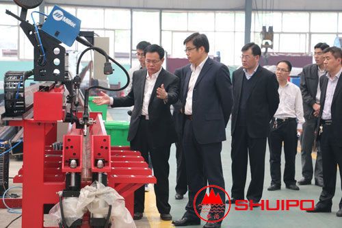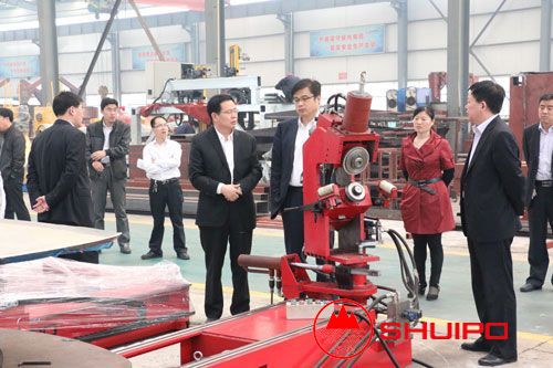 2014年4月22日10時,濟(jì)寧市市政府石中和副市長一行在市縣領(lǐng)導(dǎo)的陪同下,來公司進(jìn)行視察、調(diào)研。公司劉憲福董事長向石中和副市長,詳細(xì)介紹了“無模板異形封頭自動旋邊機(jī)”、“數(shù)控封頭旋壓機(jī)”、“數(shù)控廂板自動焊接機(jī)”、“異形罐體環(huán)縫TIG自動焊機(jī)”等多個公司自主研發(fā)的新產(chǎn)品。石市長詳細(xì)詢問了公司的運(yùn)作狀況和發(fā)展前景,并鼓勵公司開拓進(jìn)取,積極創(chuàng)新,不斷打造出高科技、高性能的產(chǎn)品。