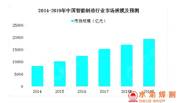 在國家政策推動,制造業(yè)技術(shù)轉(zhuǎn)型升級等背景下,中國智能制造產(chǎn)業(yè)發(fā)展迅速,對產(chǎn)業(yè)發(fā)展和分工格局帶來深刻影響。數(shù)據(jù)顯示,2017年中國智能制造行業(yè)市場規(guī)模為15150億元,增長率為22.6%,伴隨著技術(shù)的逐漸完善,應(yīng)用產(chǎn)業(yè)的不斷拓展,市場規(guī)模將持續(xù)增長,預(yù)計2019年市場規(guī)模將超19000億元。